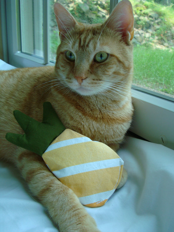 I hope you guys will check out Kelly's etsy shop if you're in the market for some adorable handmade cat toys made with organic catnip! Show her some love on facebook as well! I love the above pineapple toy, and had to include the picture with the kitty because he looks so much like Mr. Kitty!!! Obviously I'm loving the owl as well, and the fact that Kelly took a picture of it in a tree! So awesome.